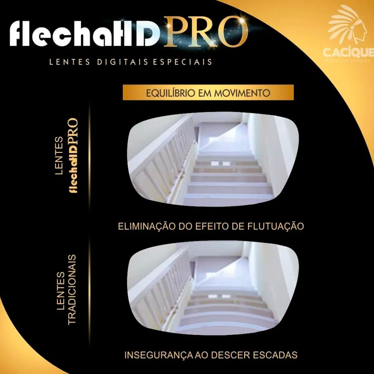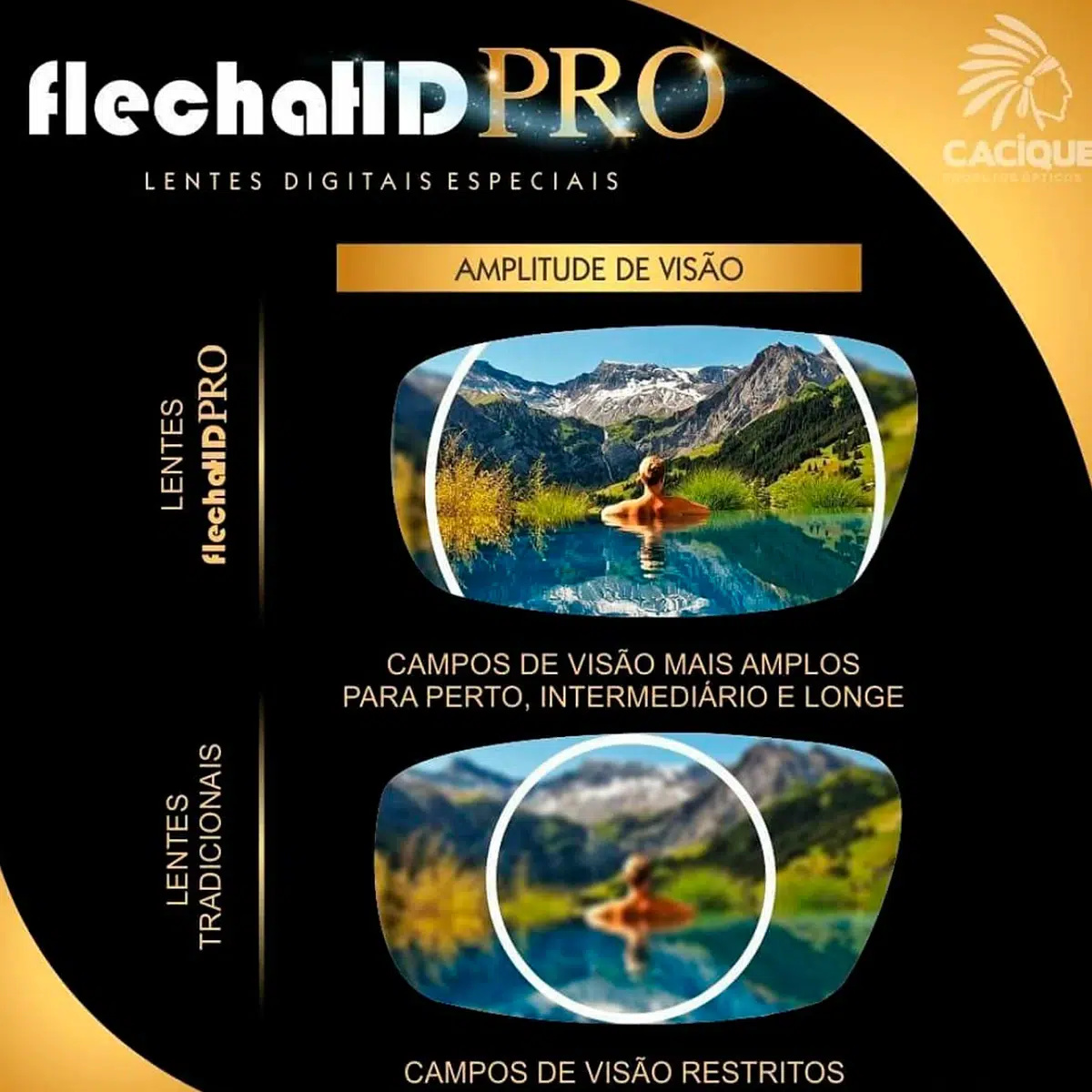 As lentes FlechaHD PRO, trazem a evolução das lentes progressivas digitais ao mercado óptico. São lentes personalizadas que proporcionam visão perfeita em todas as distâncias, com total liberdade de foco. O desenho das lentes FlachaHD PRO tem como característica reduzir o astigmatismo lateral, gerando assim um conforto visual e um amplo campo de visão.