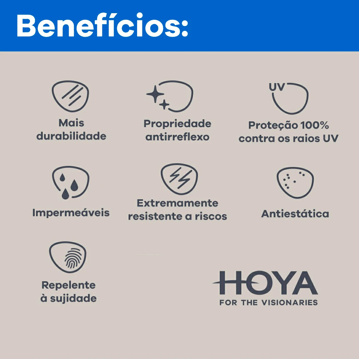 A linha de lentes Hoya investe bastante em pesquisa e desenvolvimento, trazendo uma gama de produtos reconhecida a nível mundial que oferecem um cuidado ótico completo.
