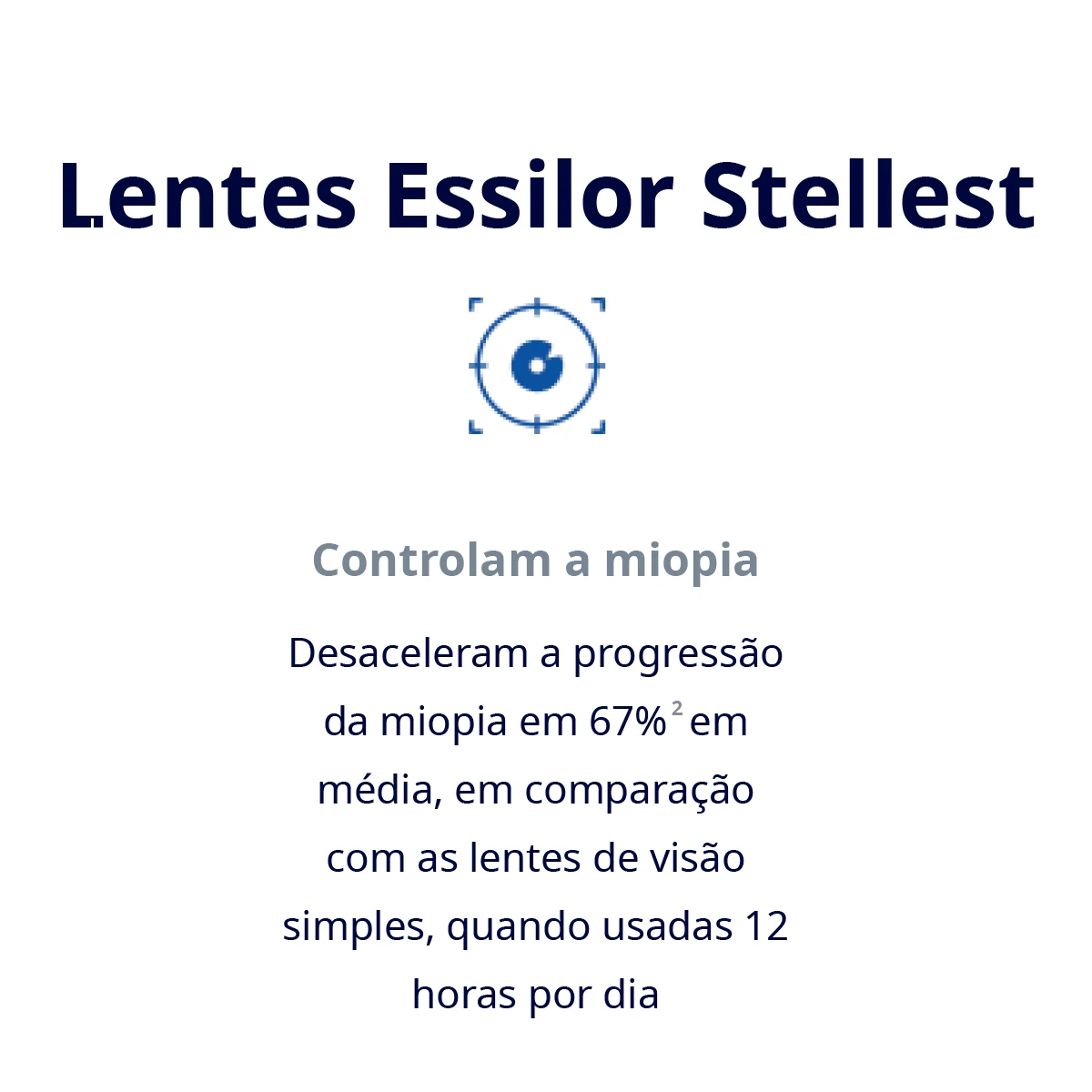 As Lentes Essilor® Stellest® são uma solução inovadora e transformadora quando o assunto é desacelerar a progressão da miopia em crianças. As Lentes Essilor® Stellest® desaceleram a progressão da miopia em 67% em média, em comparação com as lentes de visão simples, quando usadas 12 horas por dia.